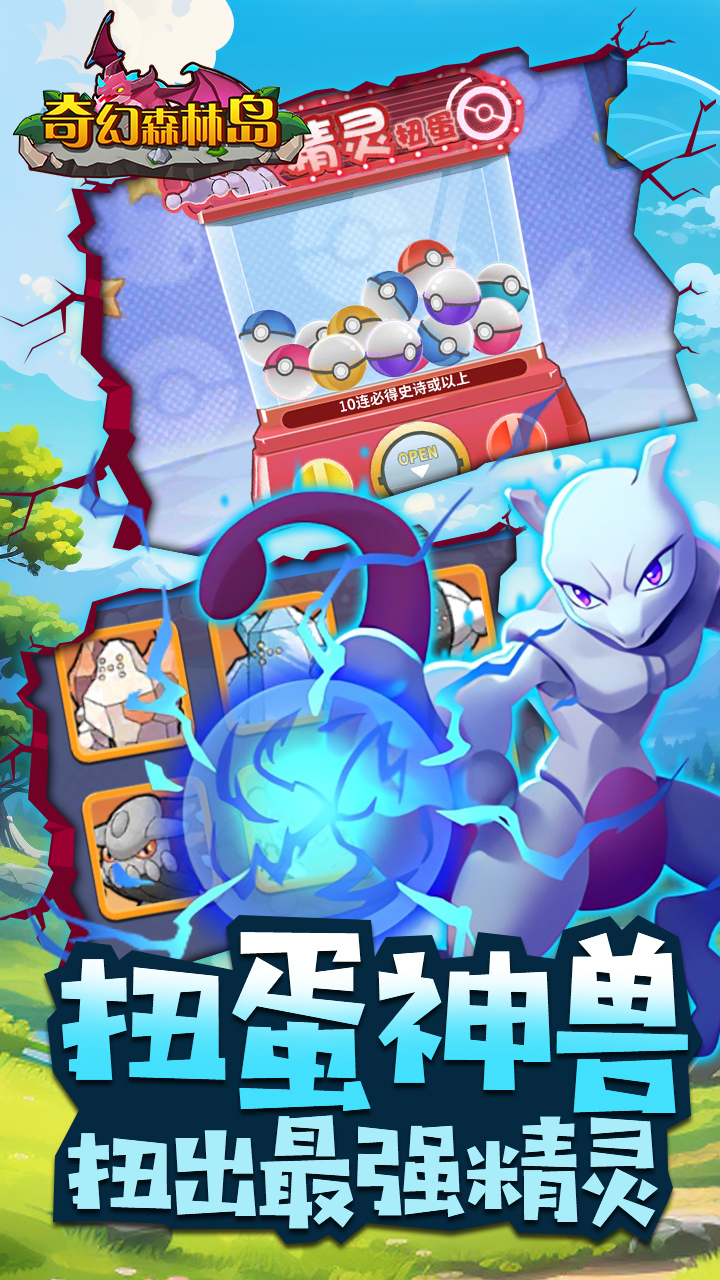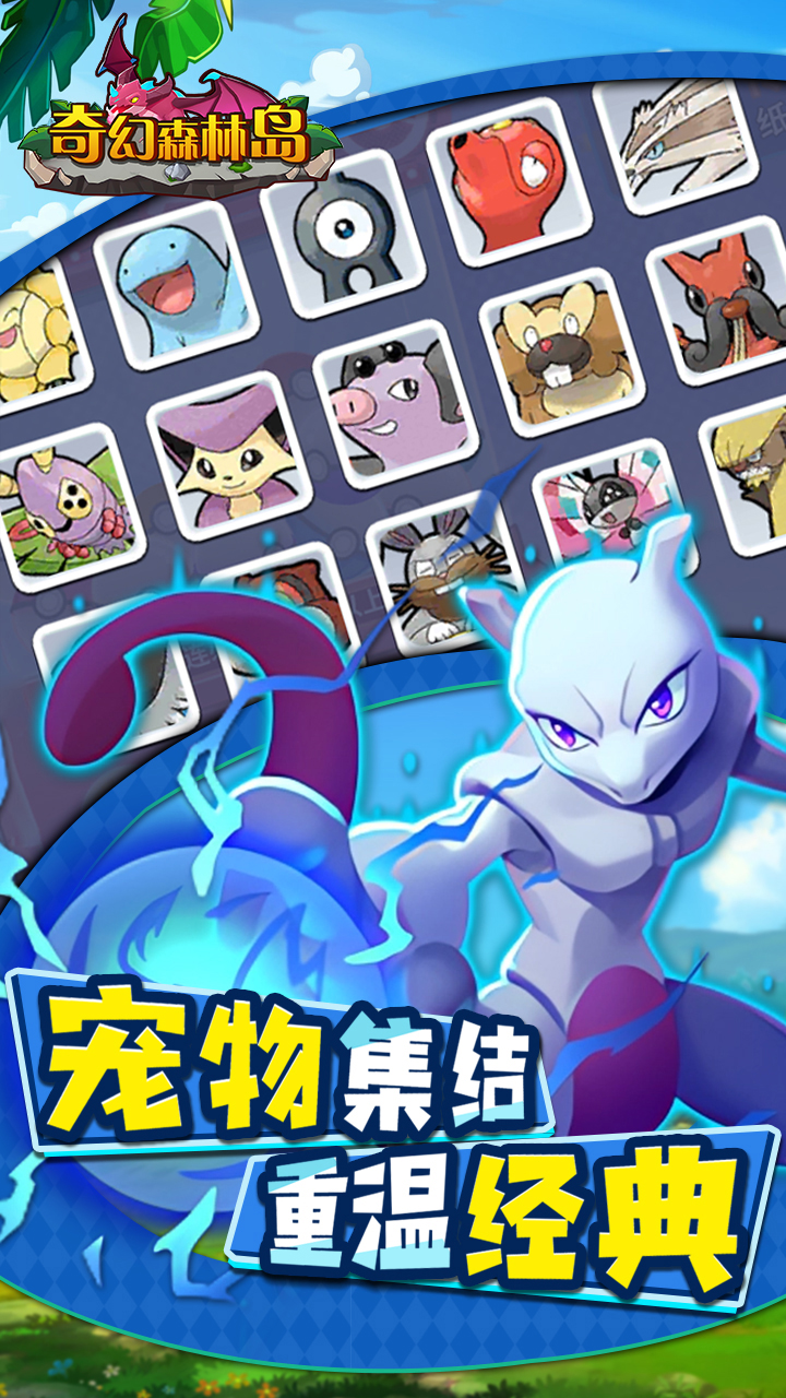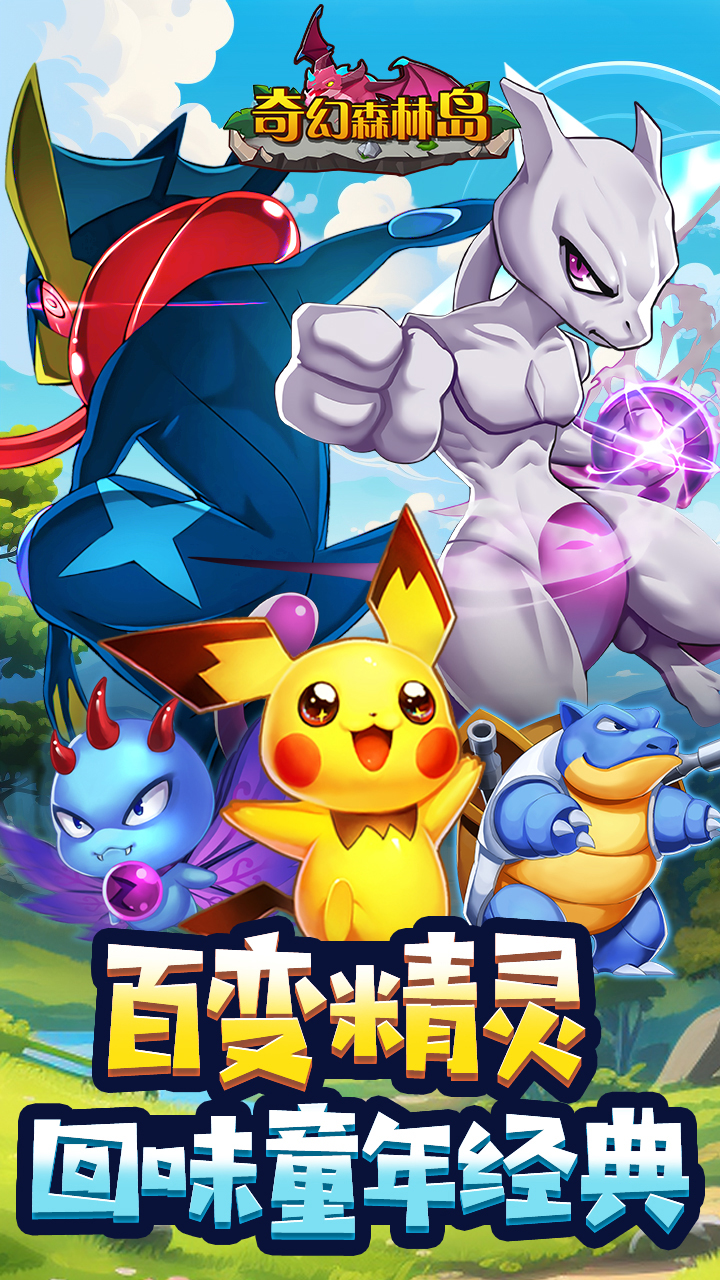 狂欢来袭 亲爱的冒险者们: 《奇幻森林岛》是一款集精灵收集养成、地图探险、策略对战,完美复刻口袋妖怪经典回合玩法的MMORPG手游。 3A级品质地图渲染、经典日漫画风精灵表现、电影级特效展示,带你体验别样的精灵世界。 游戏内收录口袋妖怪8个世代近900只精灵,600多种技能,属性克制、特性发动、精灵孵蛋等经典玩法等你来体验。 野外捕捉、狩猎场狩猎,体验全新的精灵收集方式。竞技场、本服联赛、跨服联赛、公会战、联盟杯赛等PVP玩法应有尽有,点燃你的竞技热情
